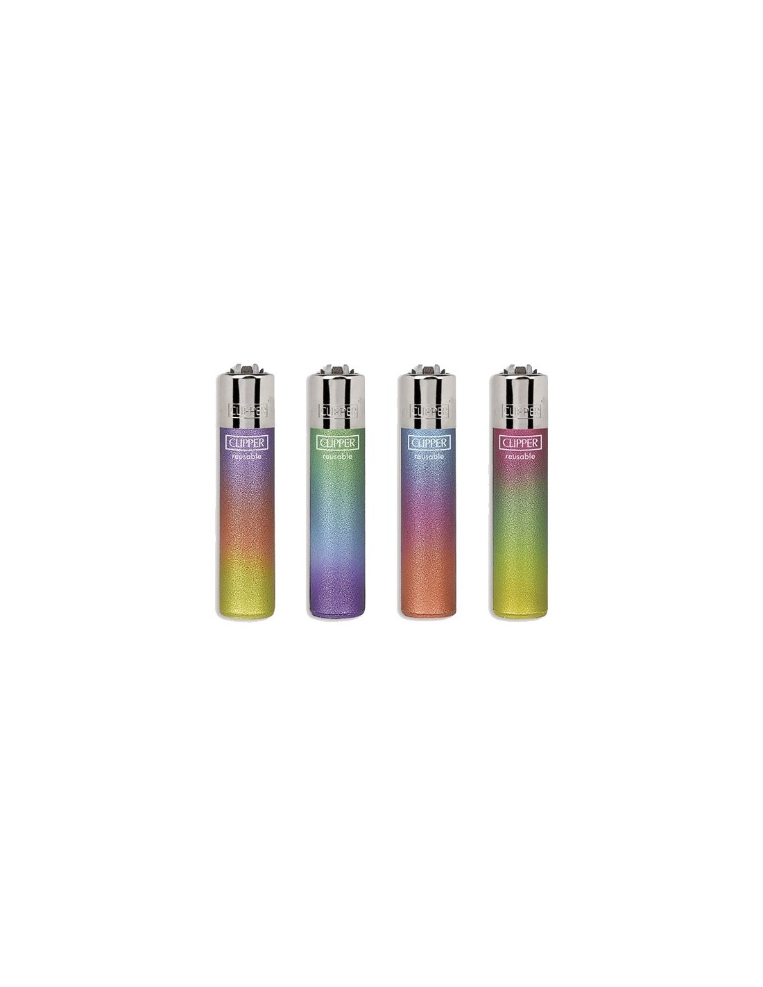 Accendini Clipper in formato Large da collezione per appassionati con stampe della serie Painted 8 effetto metallico e fluo. Accensione con pietrina con un serbatoio più grande per oltre 3000 accensioni, ricaricabile con flint sostituibile.