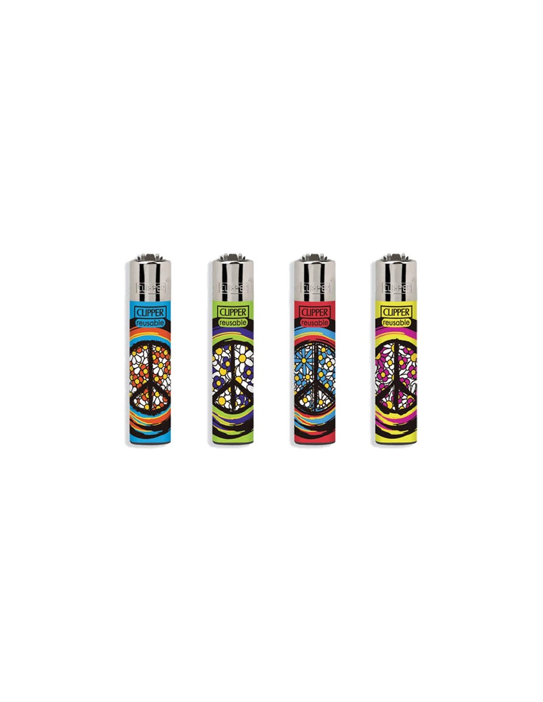 Quattro accendini originali Clipper Micro della collezione Dreams con grafiche esclusive dedicate all'amore libero. Ricaricabili con flint sostituibile.