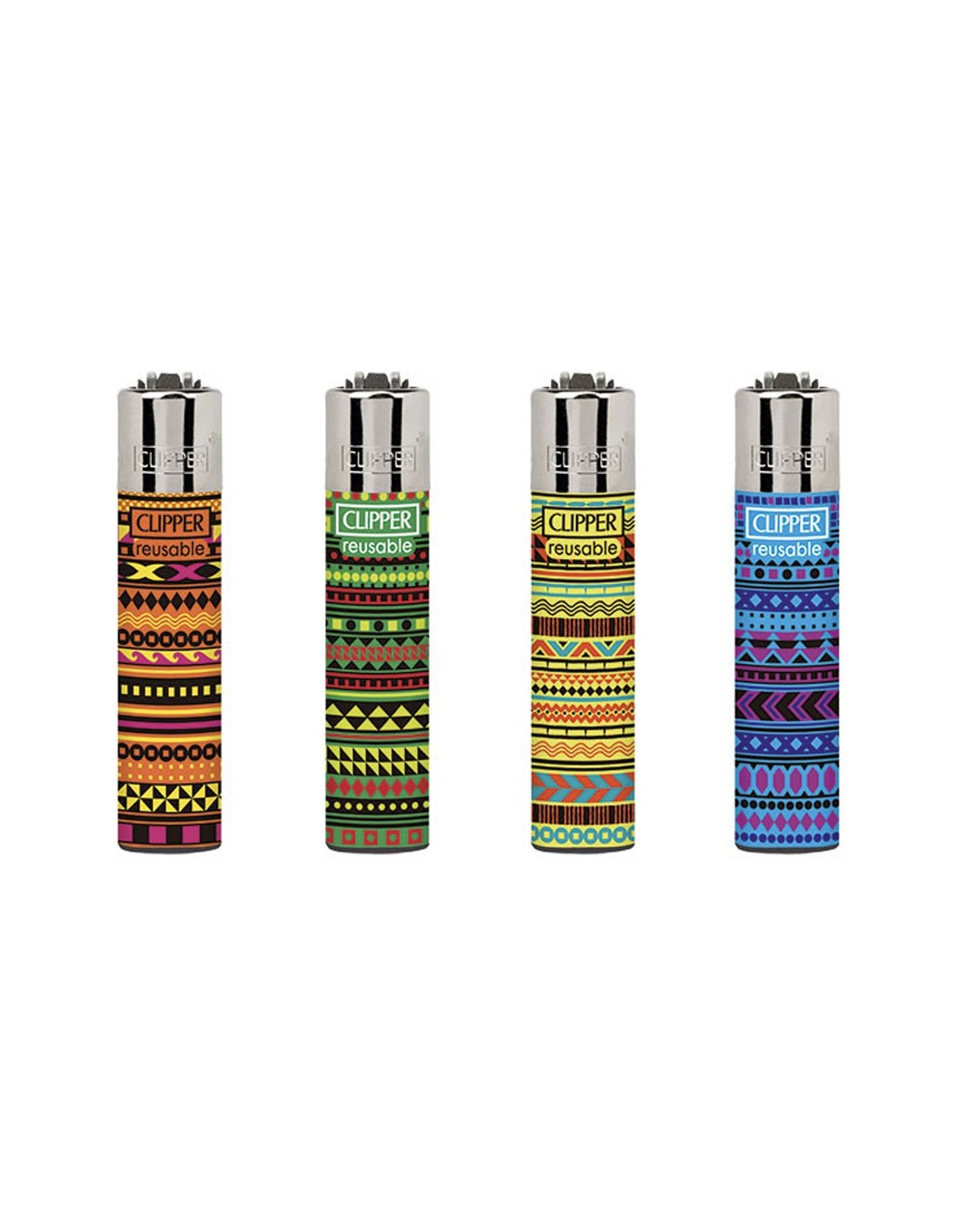 Accendini Clipper in formato Micro da collezione per appassionati con stampe della serie TRIBAL DAYS Serie 4. Accensione con pietrina con un serbatoio più grande per oltre 3000 accensioni, ricaricabile con flint sostituibile.