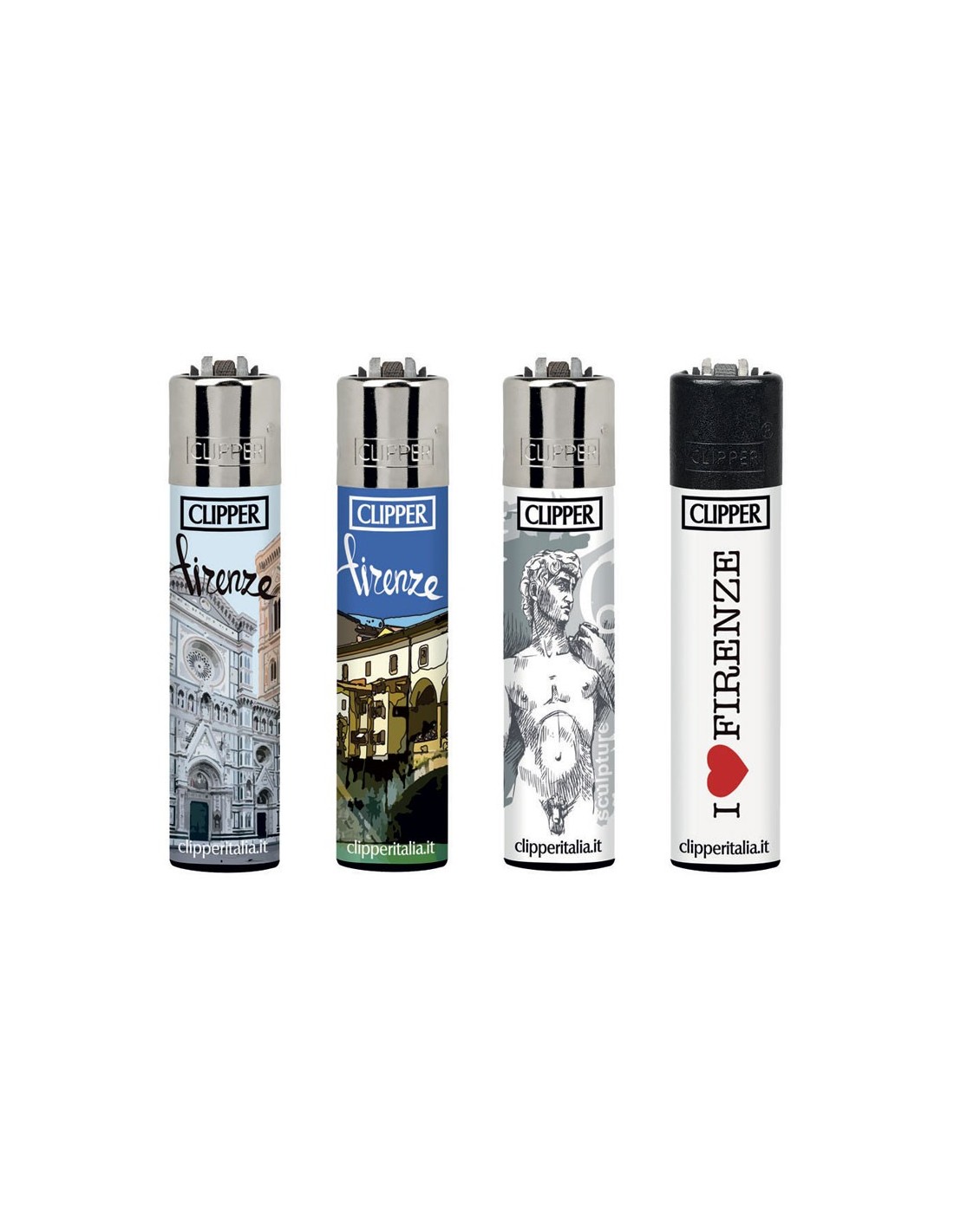 Quattro accendini originali Clipper Large della collezione FIRENZE con grafiche esclusive.