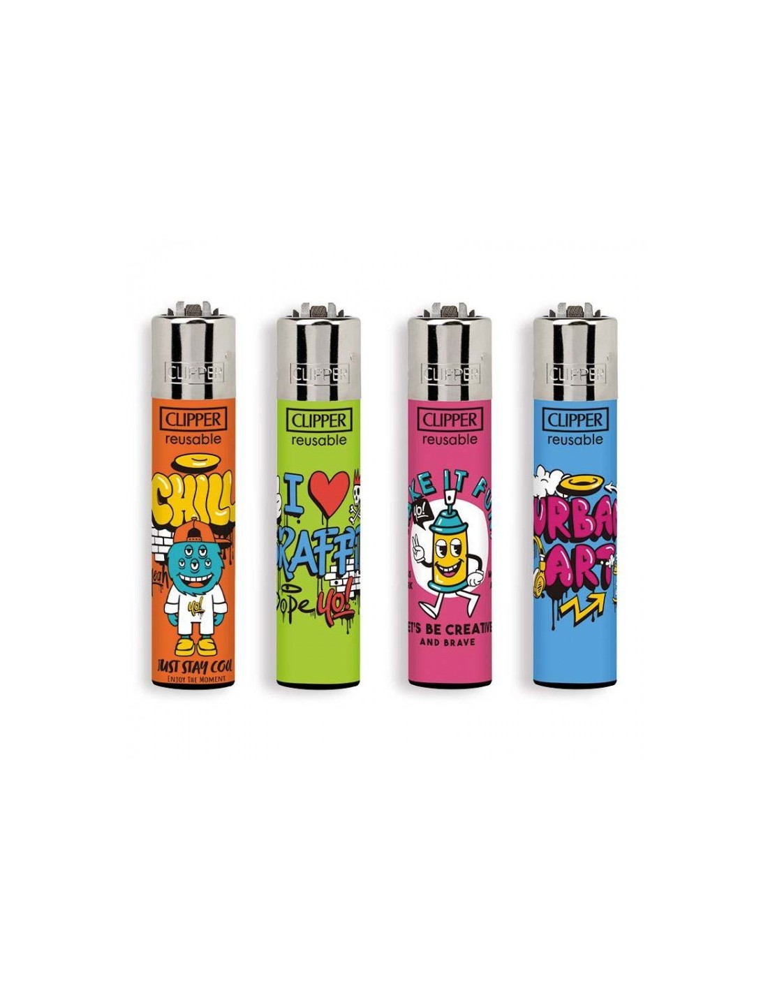 Quattro accendini originali Clipper Large della collezione STREET CHILL con grafiche esclusive.