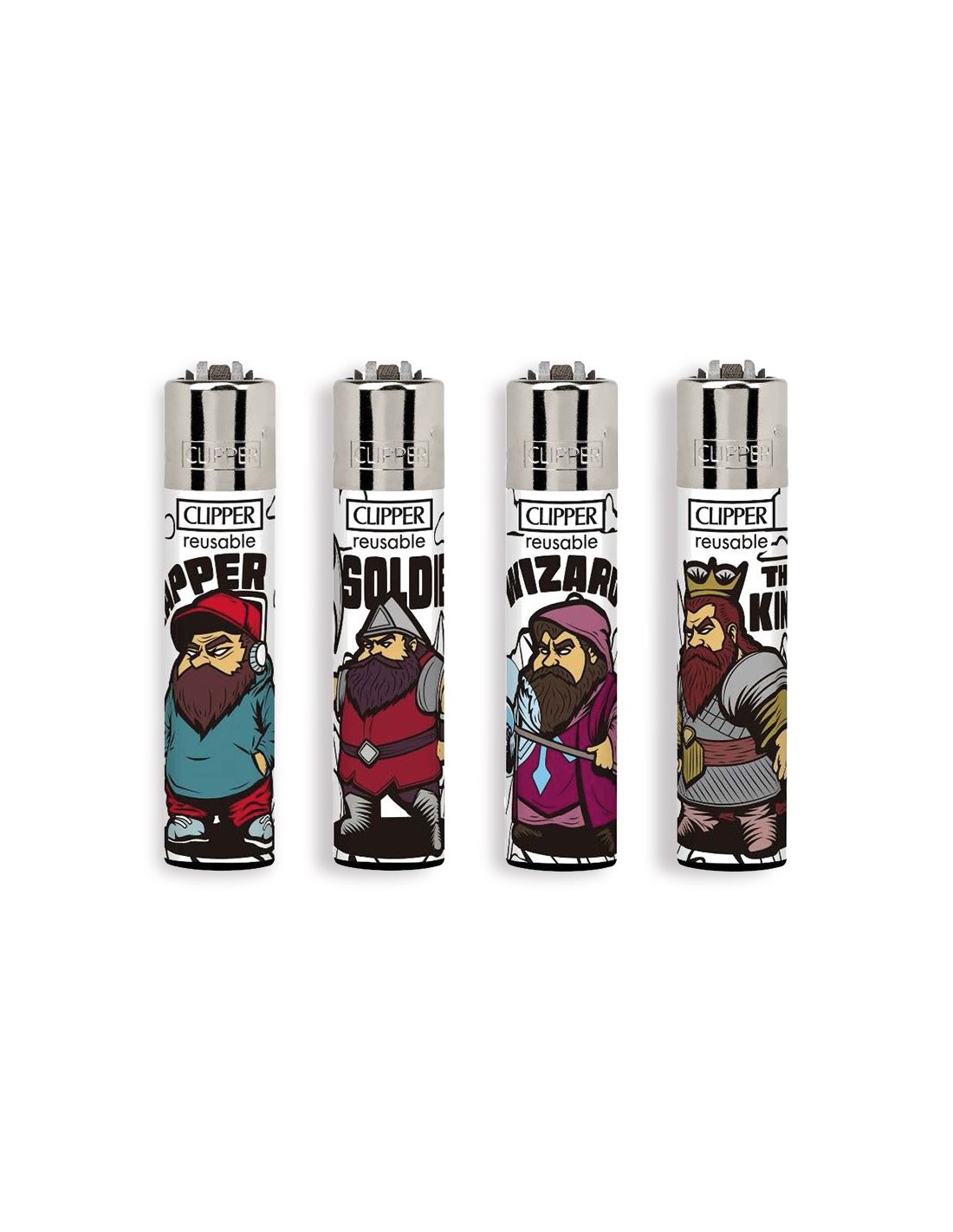 Quattro accendini originali Clipper Large della collezione Play Offs 2 con grafiche esclusive.