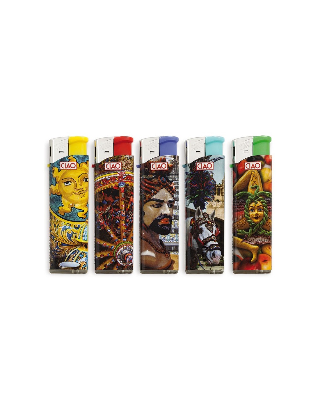 Piezo - fiamma. Finitura: color fantasy.Scopri la gamma di accendini CIAO dedicata alle più belle città e regioni italiane. In questo display 5 suggestive immagini della solare Sicilia.
