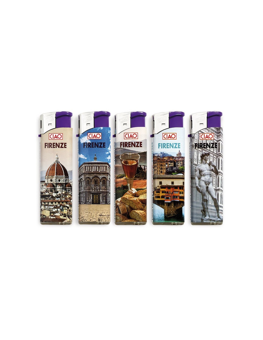 Piezo - fiamma. Finitura: color fantasy.Scopri la gamma di accendini CIAO dedicata alle più belle città e regioni italiane. In questo display 5 suggestive immagini dell'artistica Firenze.