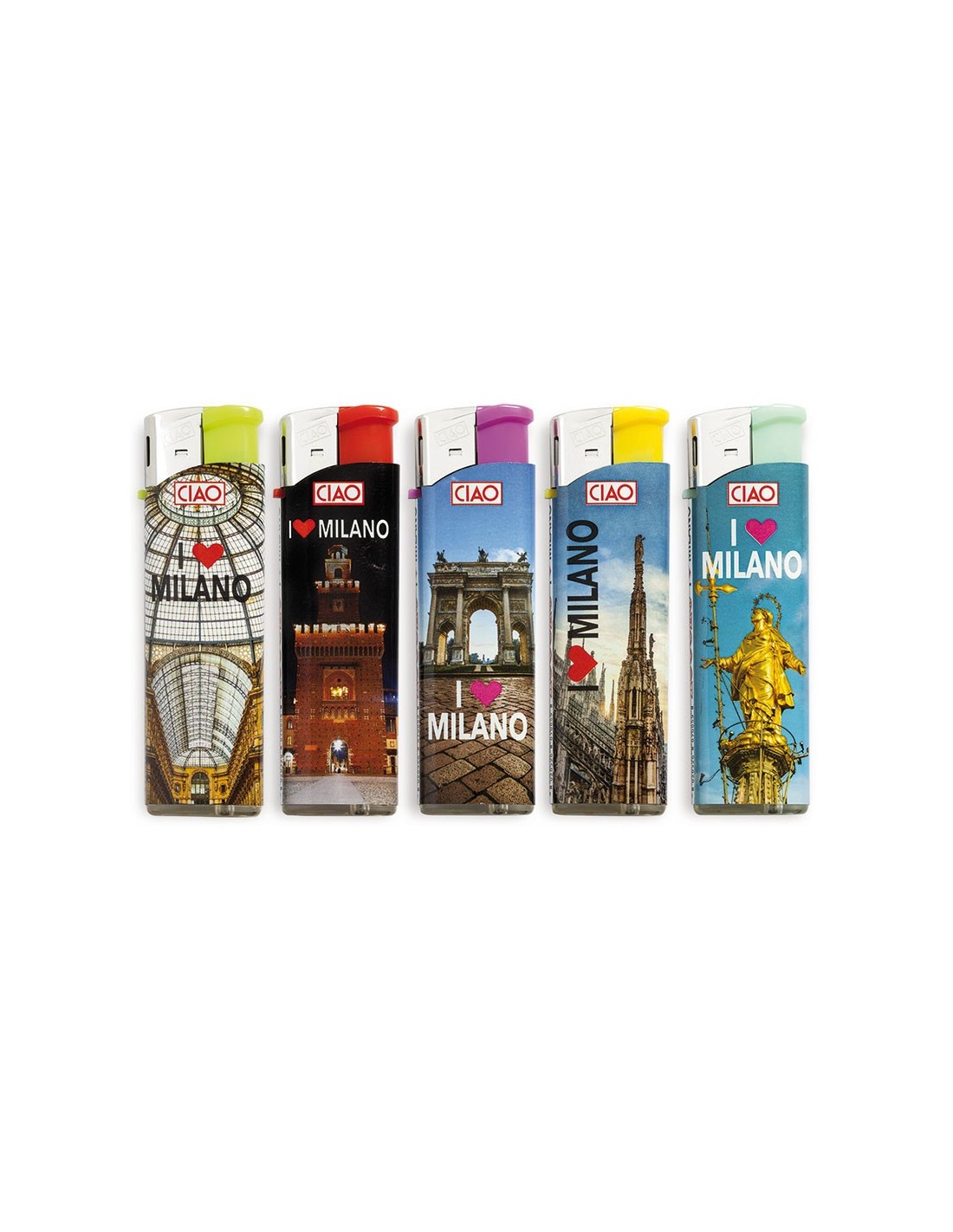 Piezo - fiamma. Finitura: color fantasy.Scopri la gamma di accendini CIAO dedicata alle più belle città e regioni italiane. In questo display 5 suggestive immagini della grandiosa Milano.