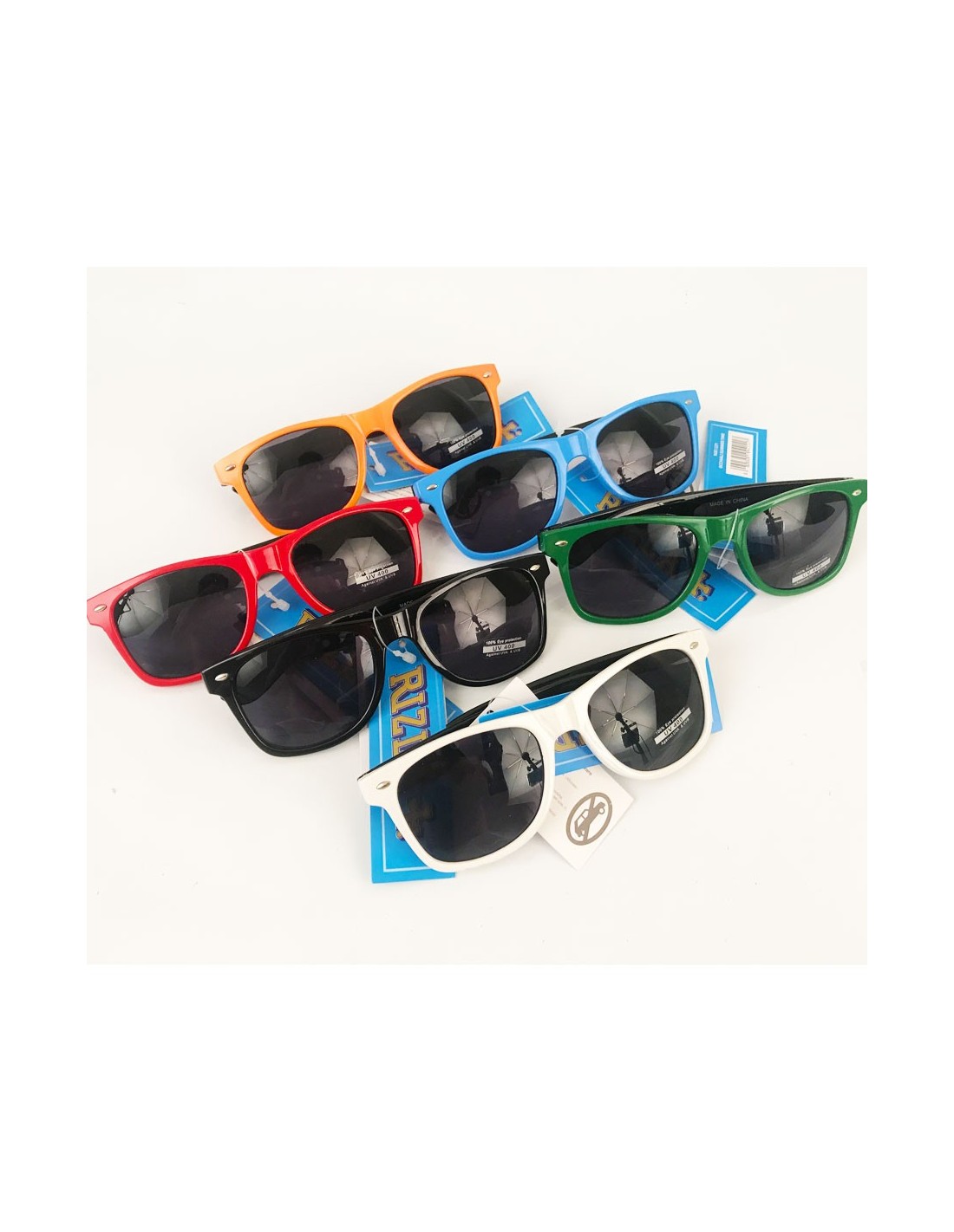 Occhiali da sole 100% Eye protection UV 400, protegge dai raggi ultravioletti UVA e UVB. Disponibili in diverse colorazioni.