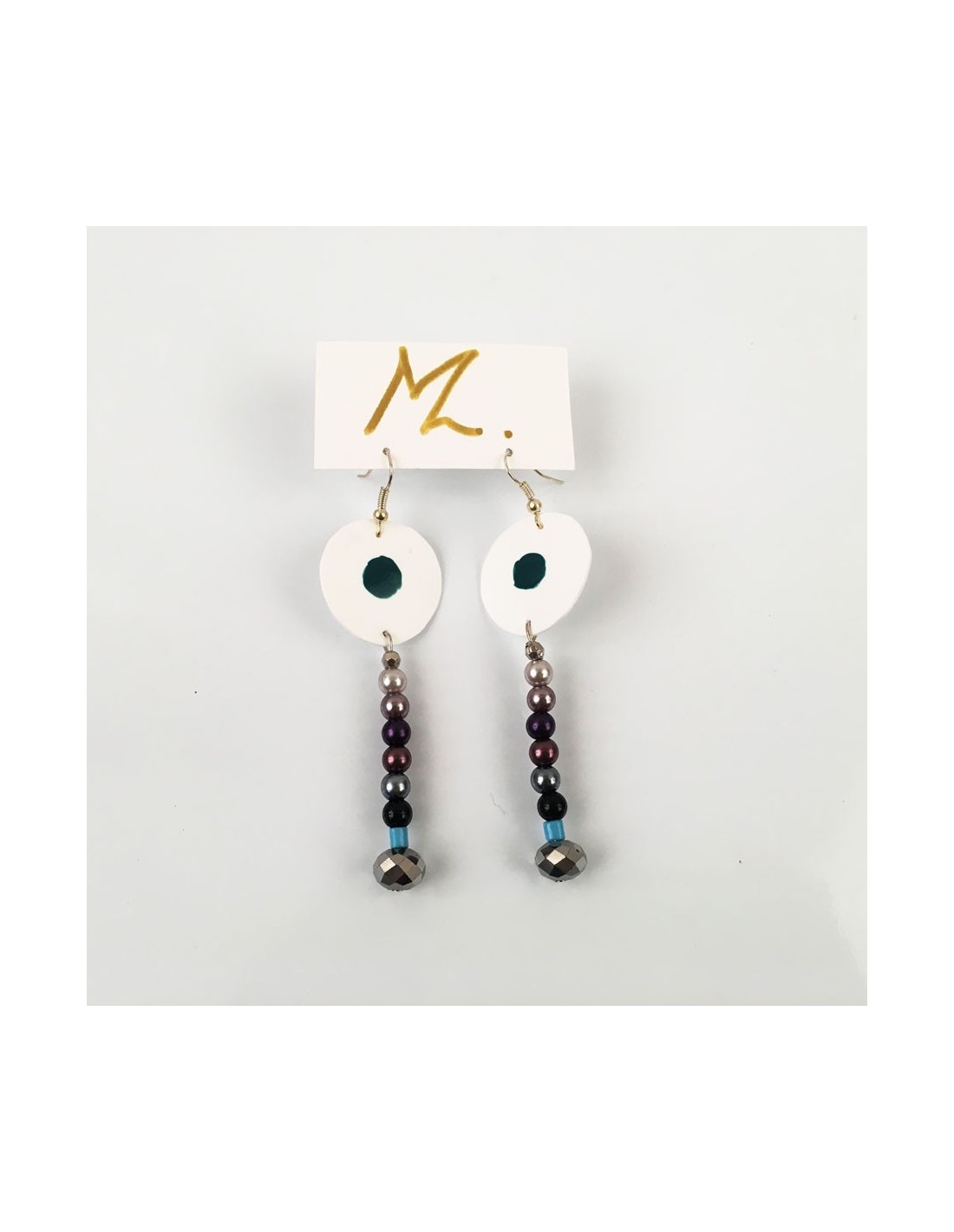 Orecchini artigianali Modello Rea realizzati con l'utilizzo di materiali da riciclo. Reinterpretazioni e trasformazioni per far sorridere la natura e donare un pizzico di vanità a chi le indossa.