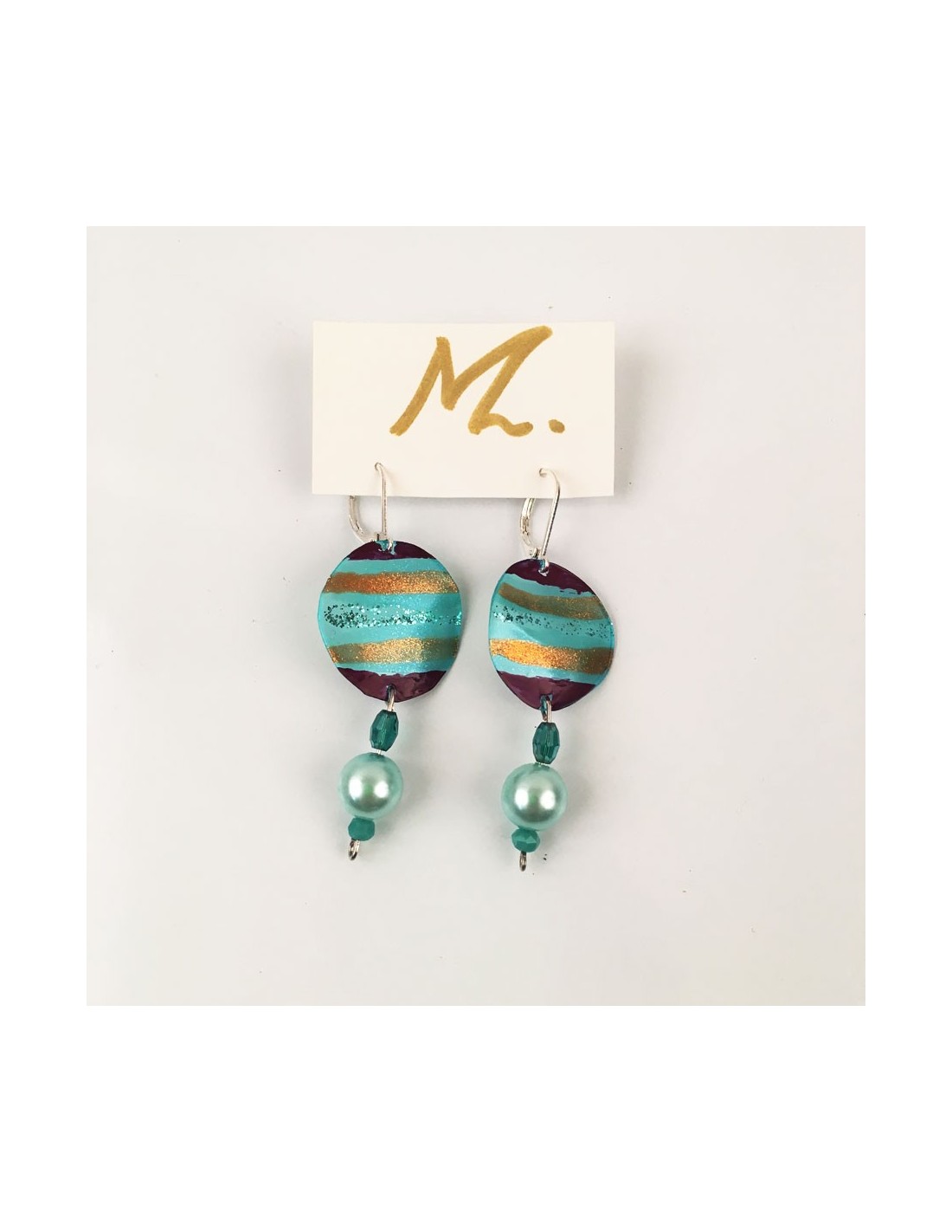 Orecchini artigianali Modello Arianna realizzati con l'utilizzo di materiali da riciclo. Reinterpretazioni e trasformazioni per far sorridere la natura e donare un pizzico di vanità a chi le indossa.