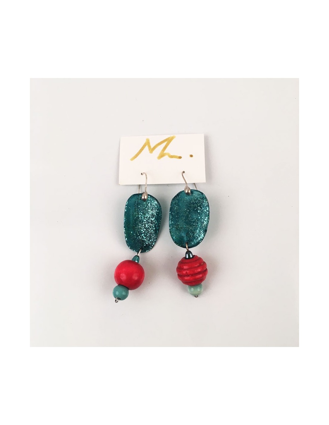 Orecchini artigianali Modello Aurora realizzati con l'utilizzo di materiali da riciclo. Reinterpretazioni e trasformazioni per far sorridere la natura e donare un pizzico di vanità a chi le indossa.
