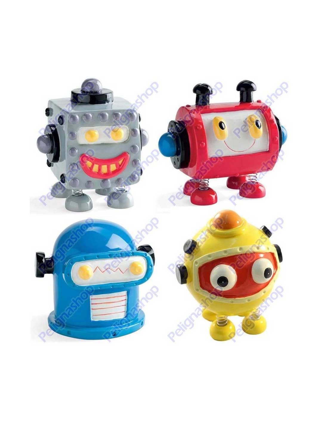 Salvadanaio in resina a forma di mostro con piedini molleggianti. Apertura sul fondo.